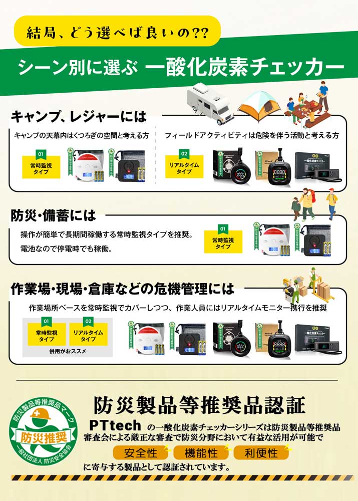 一酸化炭素の警報機器は火災報知器のような設置義務がなく、日本ではまだあまり身近な製品ではありません。